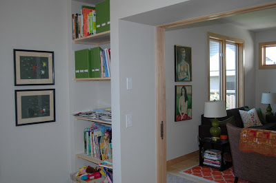 While I think this is partly because of the walls I have available--the larger walls are either broken up by really big windows or too big for small works, and the smaller walls are taller than they are wide--I must just also like the way the stack looks.